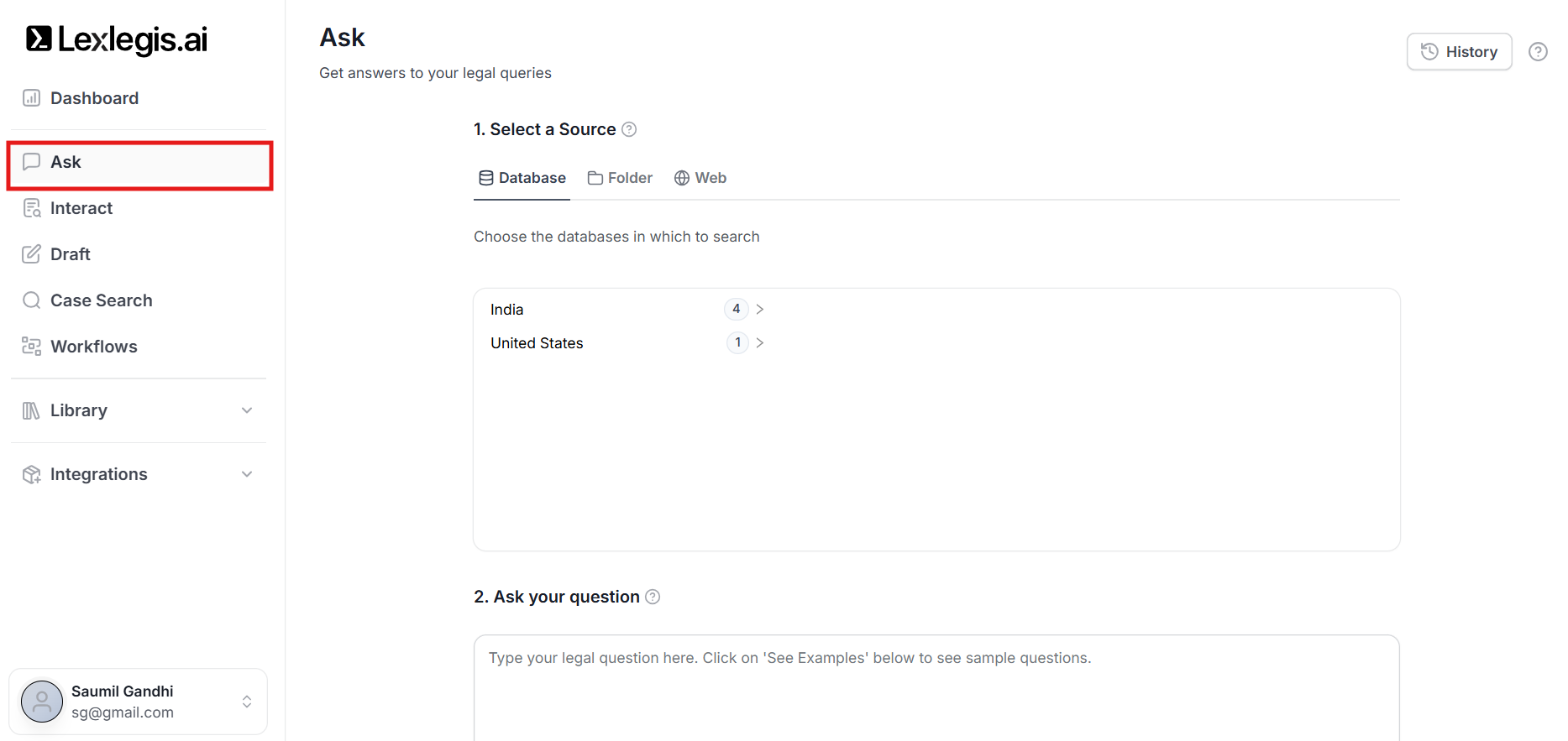 - Ask - To get legal answers with sources.