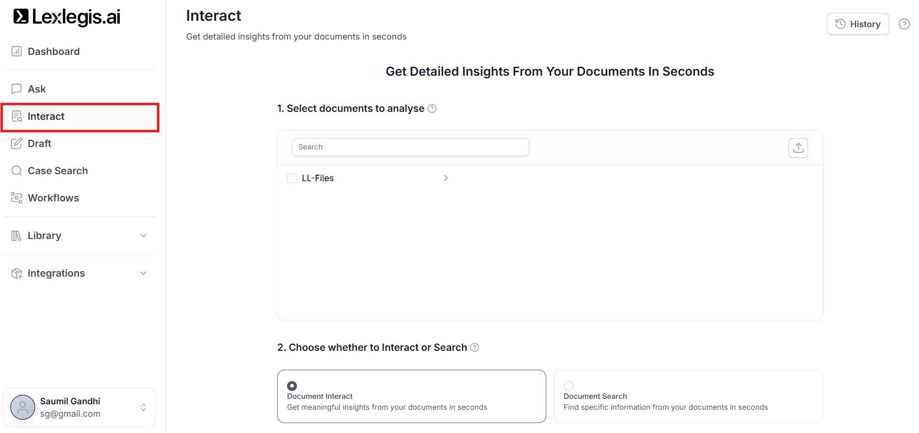 Upload your own files and folders and use them seamlessly across Ask and Interact workflows, or save custom prompts for future reuse. Everything is automatically organised and easily accessible.