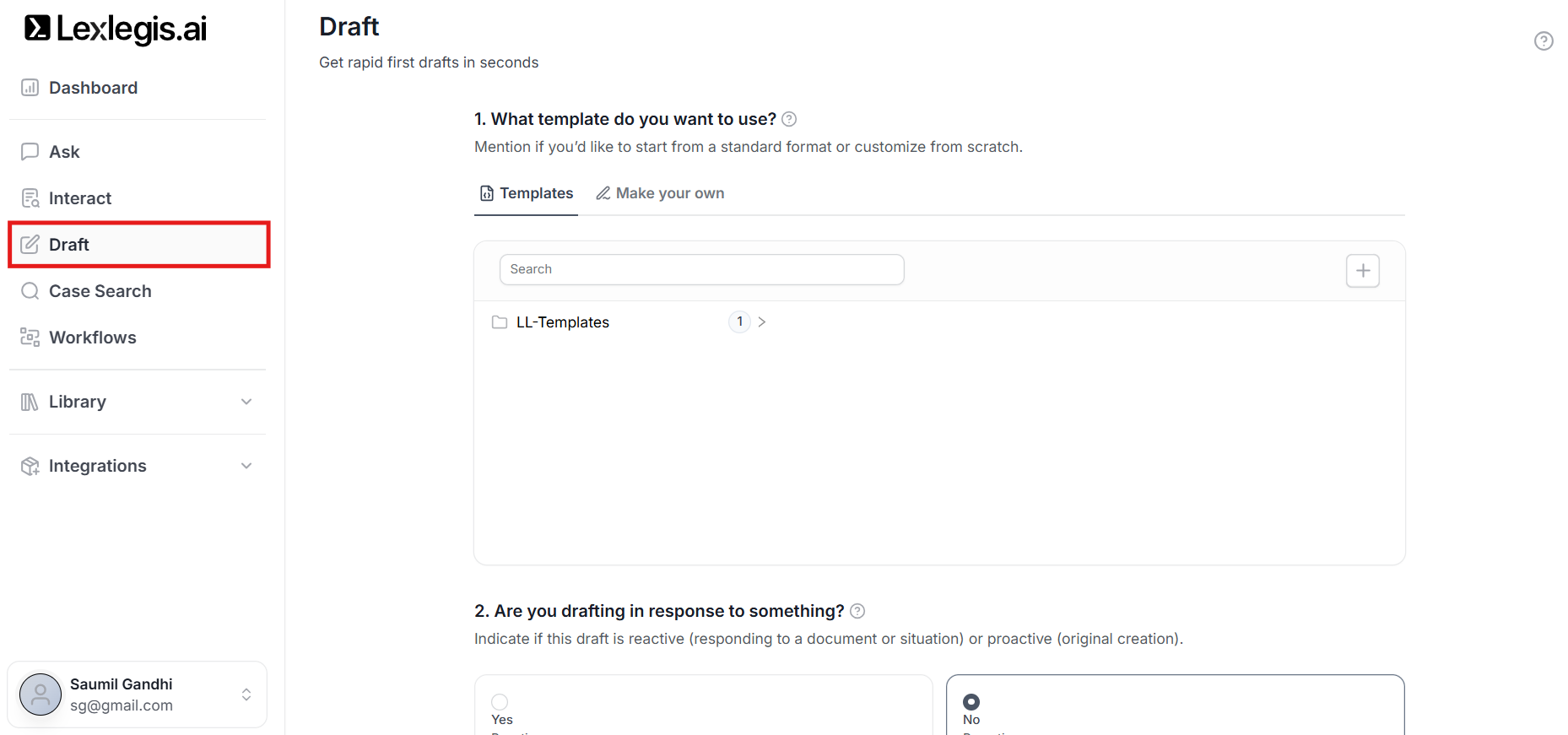 - Drafting from preset or custom templates