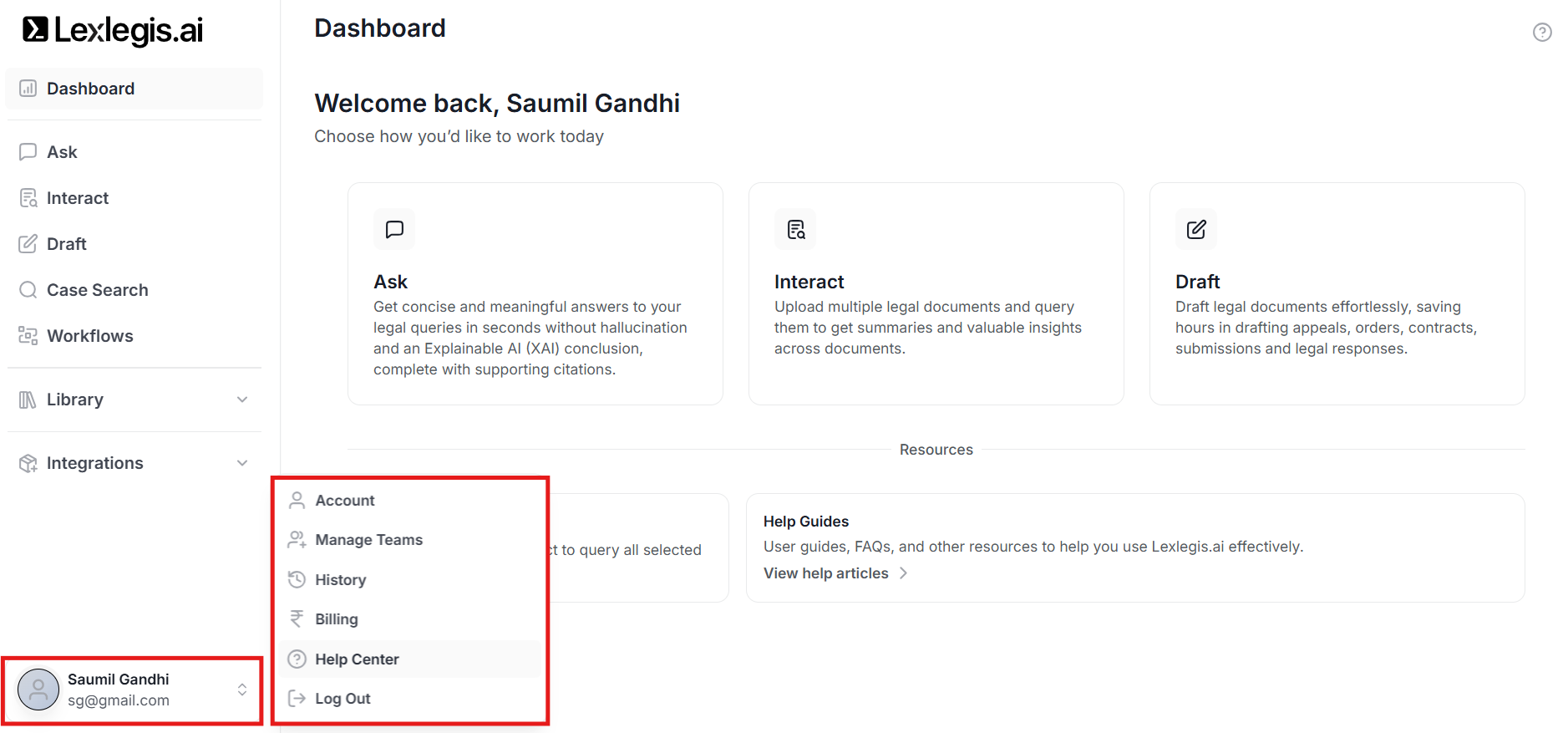 Lexlegis.ai includes built-in guidance at multiple levels: