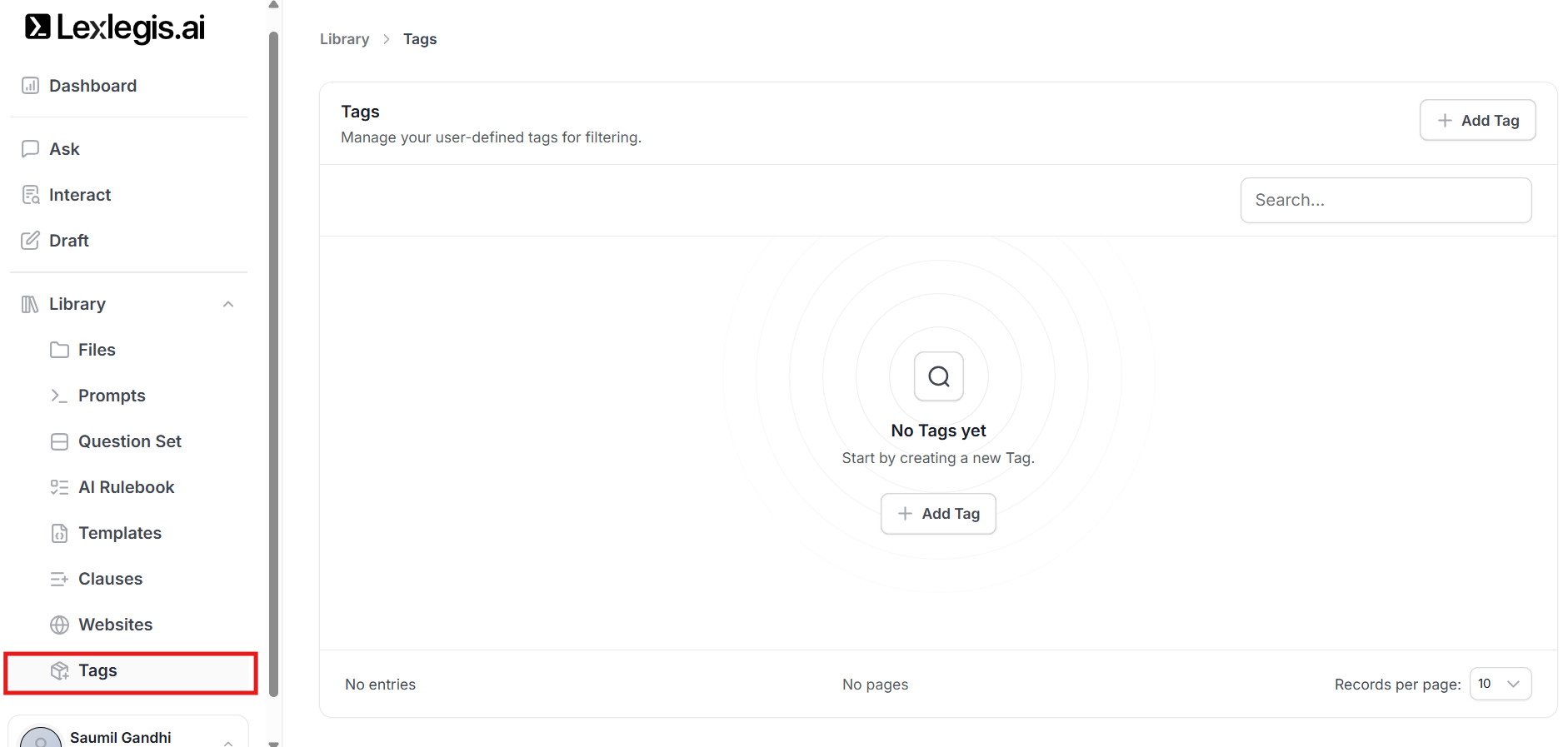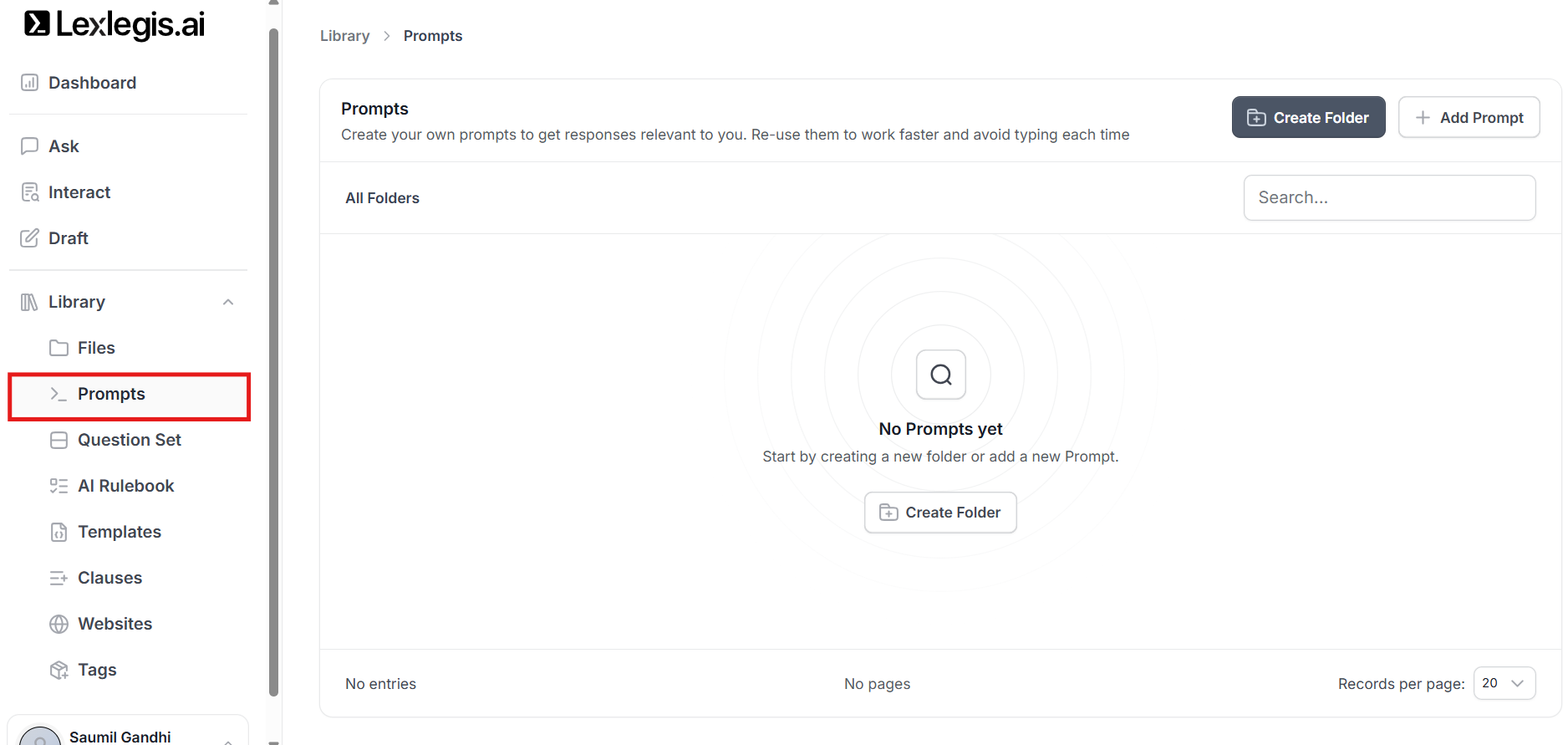 The Library in Lexlegis.ai is the central repository for all reusable resources used across Ask, Interact, and Draft.