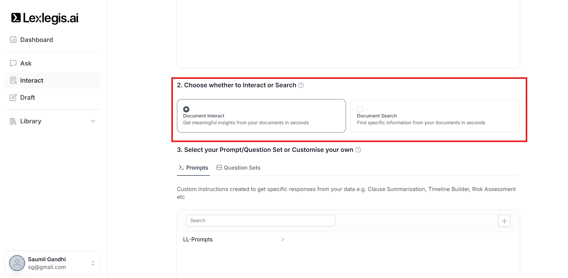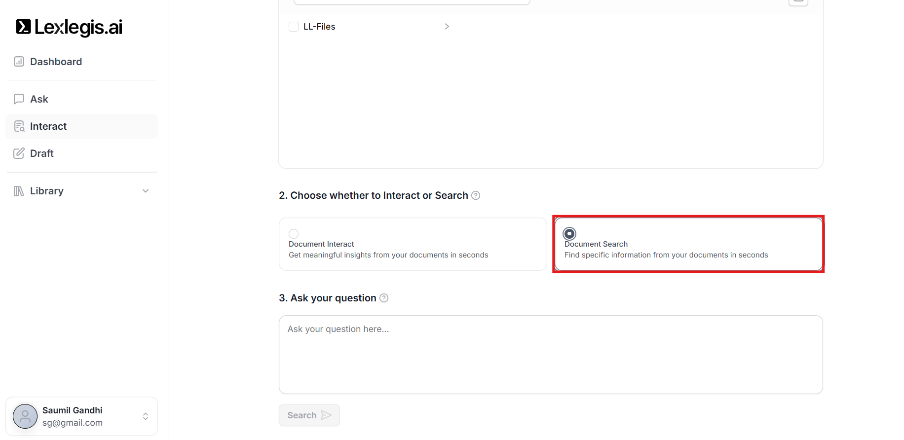 Your selection directly controls how Lexlegis processes documents and responds to follow-up queries.