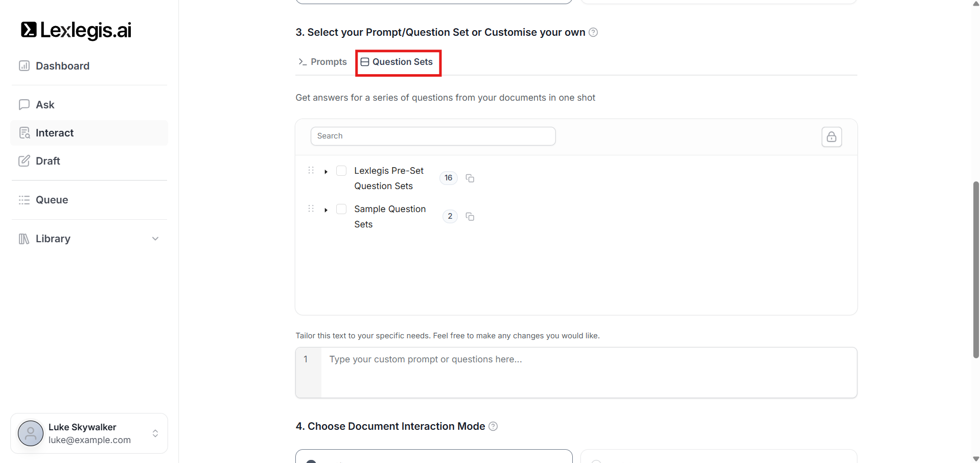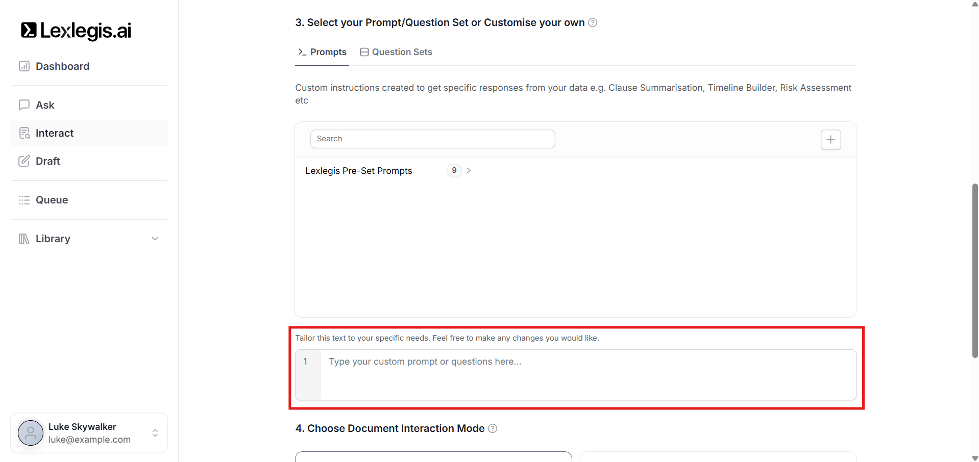 Once saved, the Prompt becomes immediately available across Ask, Interact, and Draft (where applicable).