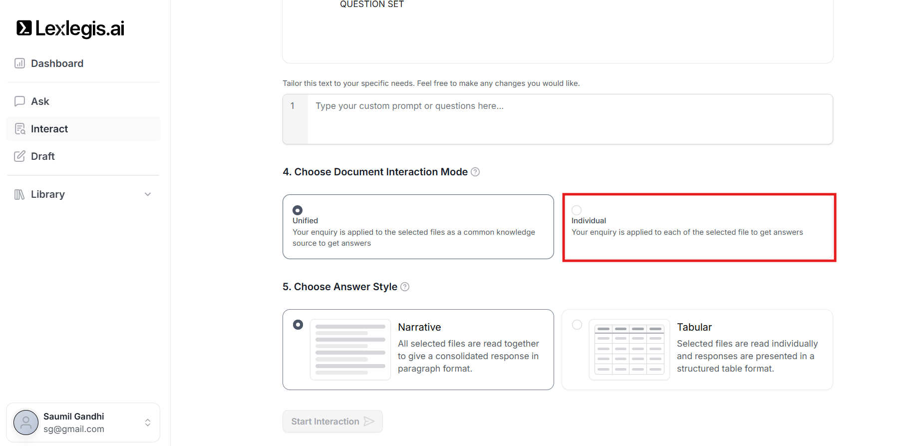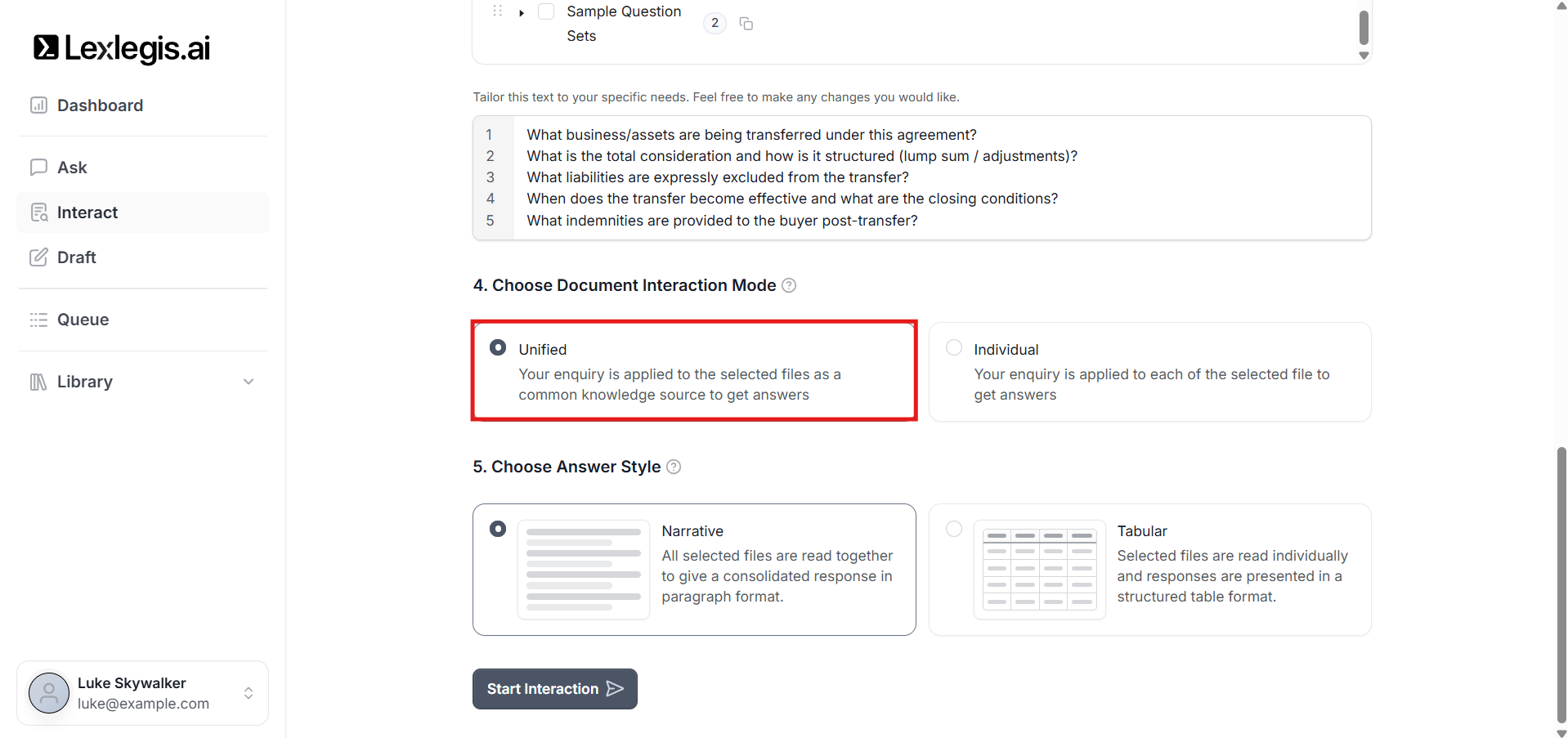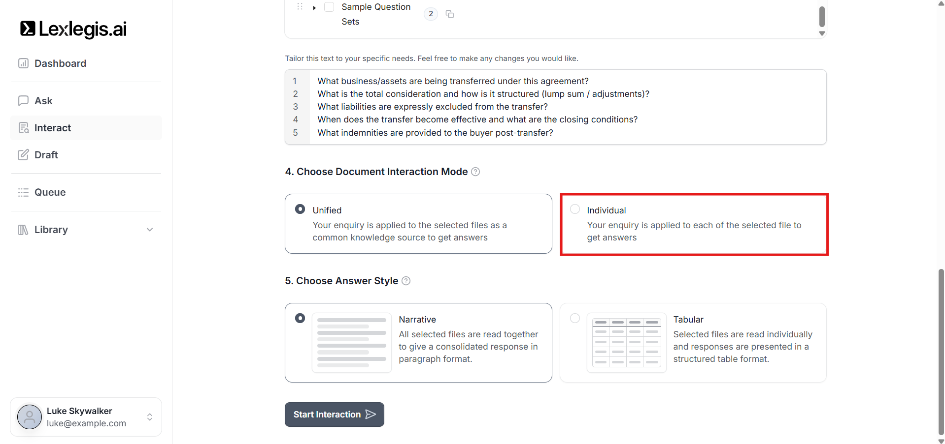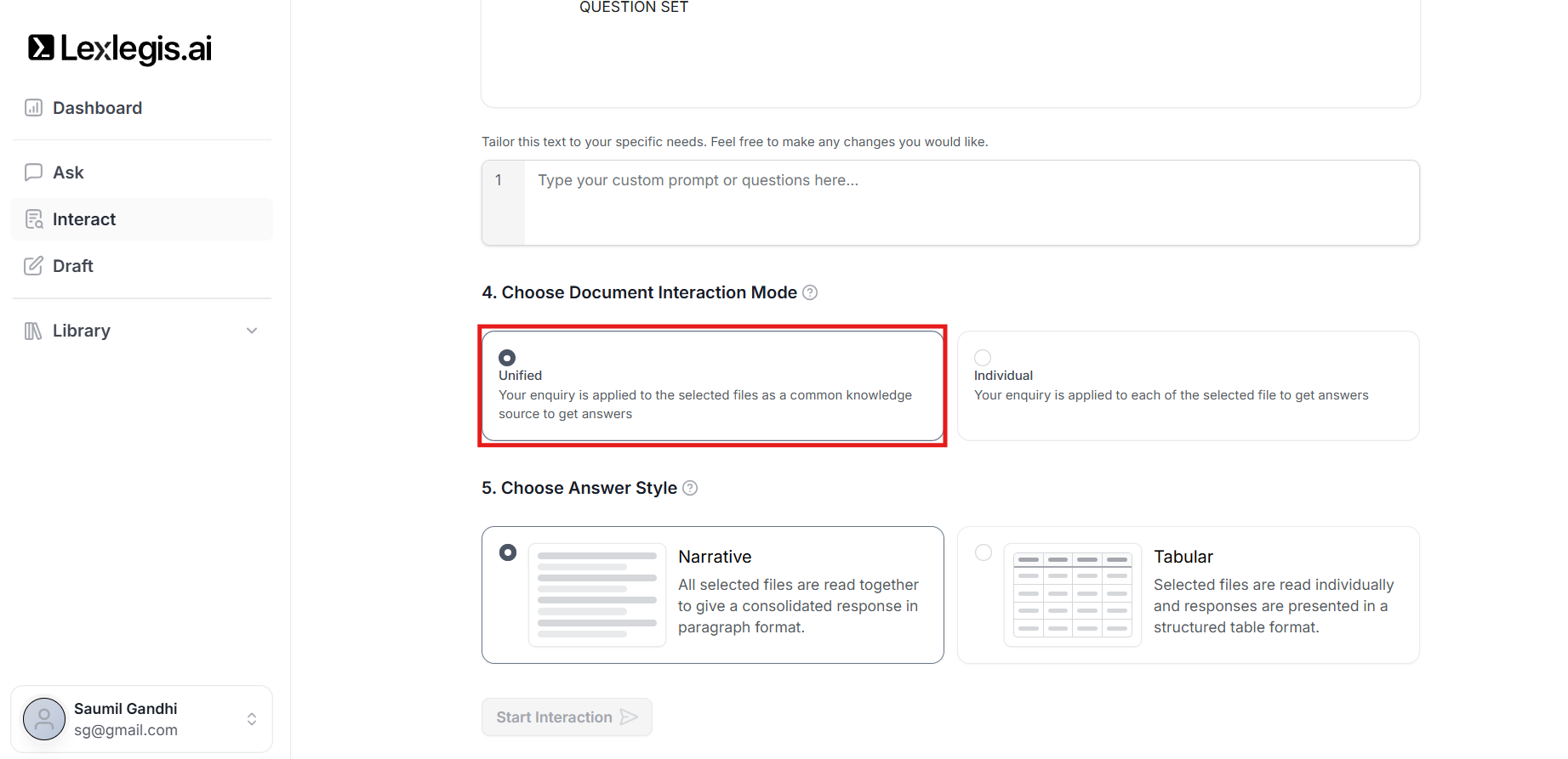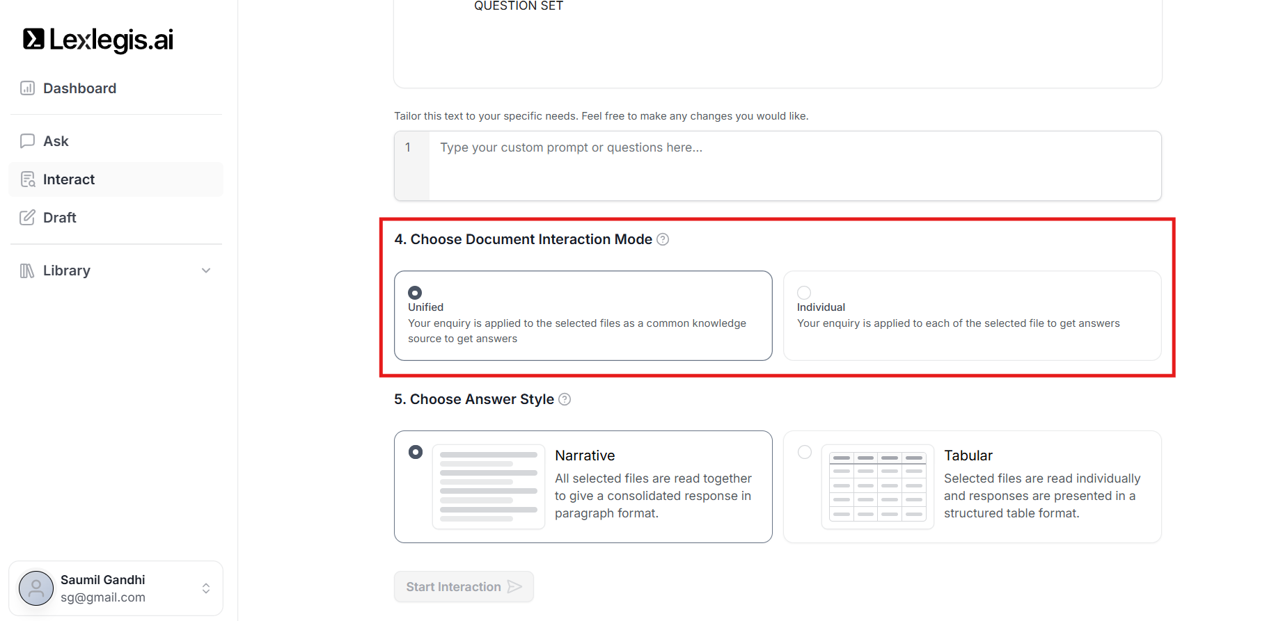 Each mode controls how Lexlegis reads, reasons over, and structures results from your documents.