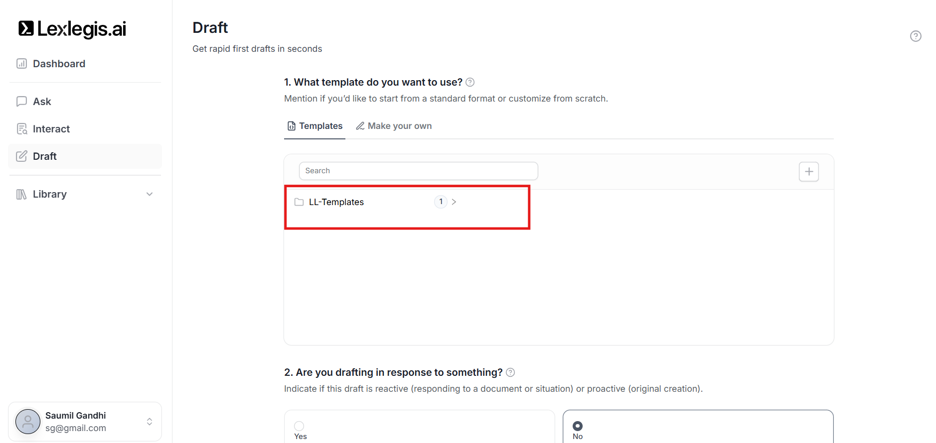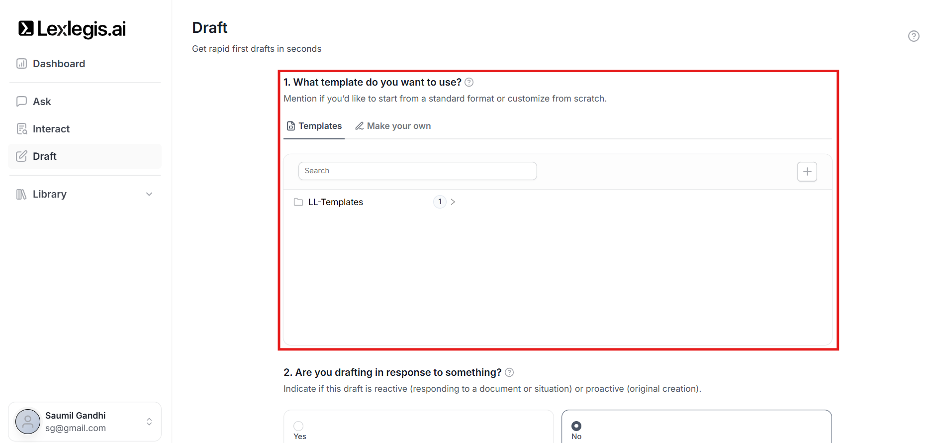 This decision determines the base format and structure of the draft that Lexlegis generates.