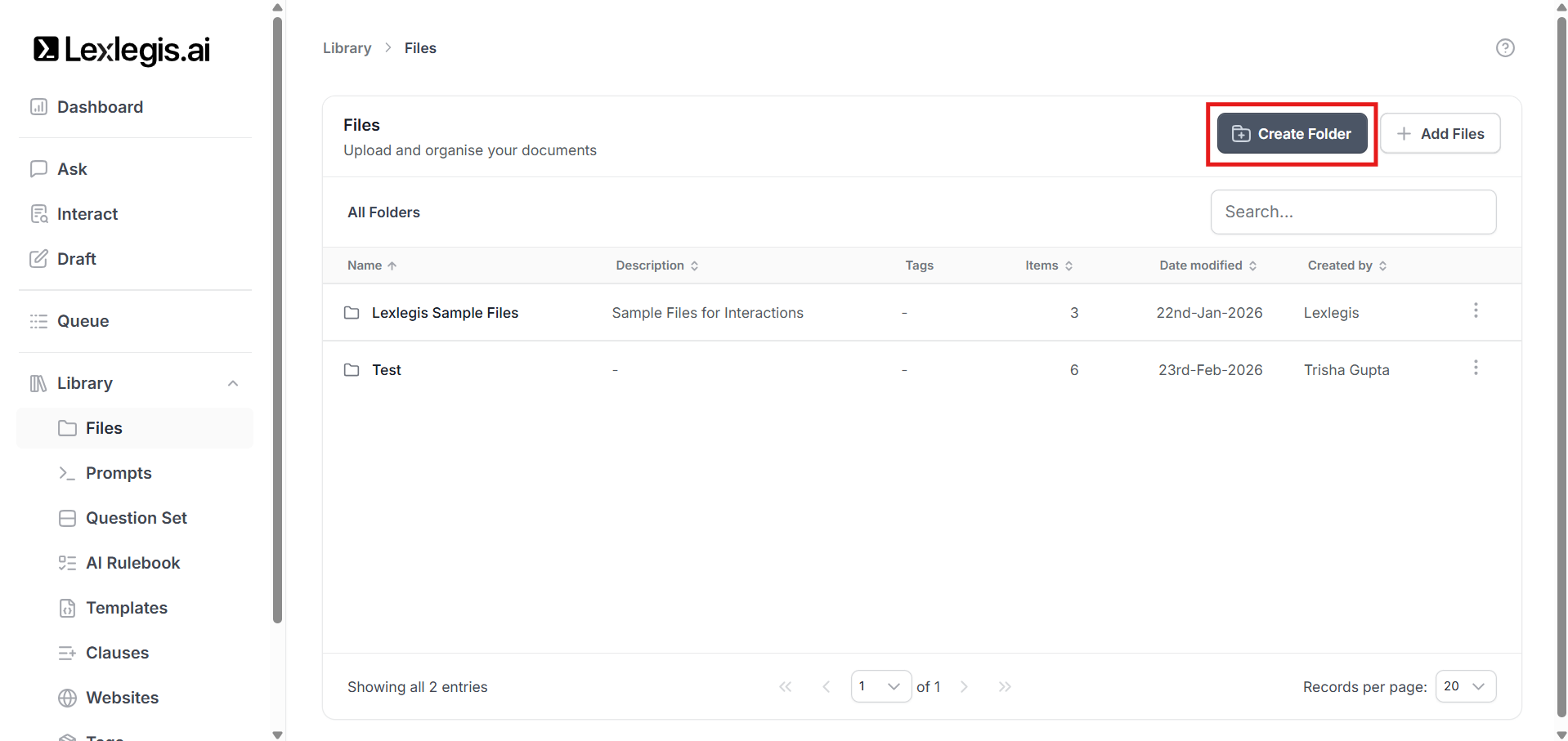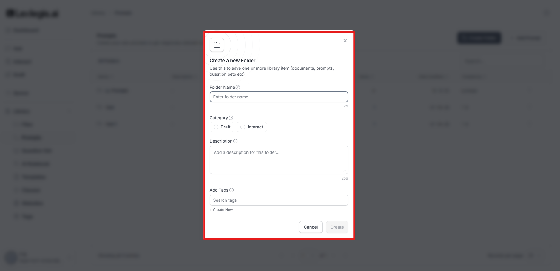 Folders help you organise documents, prompts, question sets, and other Library items in a structured way.
